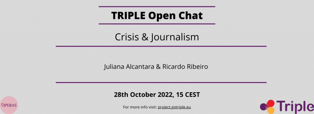 On the 28th October 2022, Juliana Alcantara and Ricardo Ribeiro chatted with us about their crowdfunding project on Crisis & Journalism, what motivates them and why they choose to crowdfund their project.